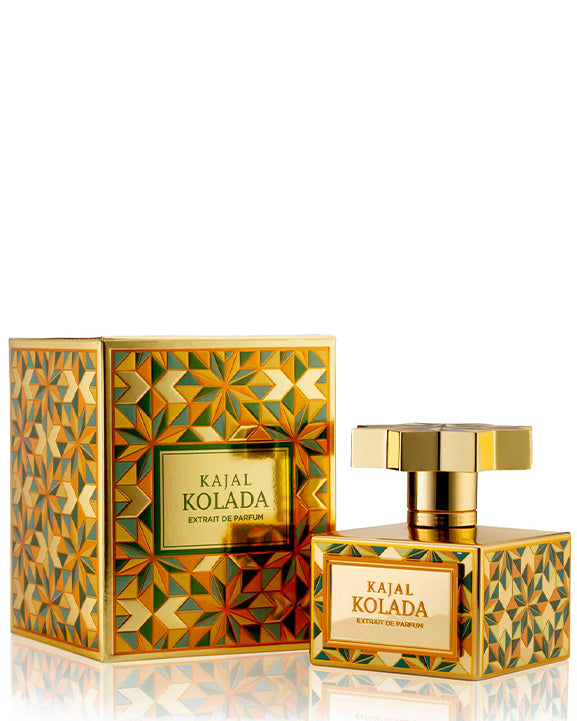 Inspired by the iconic Pina Colada, Kajal Kolada pays homage to happiness, tranquility, and exoticism. The Pina Colada conjures visions of a lush, tropical paradise, where the emerald palm leaves of coconut groves gently sway as a blissfully balmy breeze caresses them, offering momentary respite from the sultry heat. Pristine ivory sands meet shimmering aquamarine waters, seamlessly blending into pastel-colored cotton candy skies as infinite as the hopes and dreams within us all.