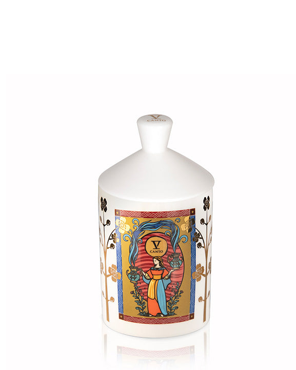 V Canto White Ceramic Candle With Decoration, 1 Wick – Arkano della Temperanza