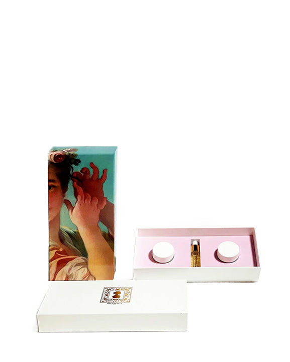 MDCI BEAUTÉ discovery box containing a 5ml / 0.17 fl oz day cream sample, a 5 ml / 0.17 fl oz night cream sample and a 3 ml / 0.10 fl oz serum sample.